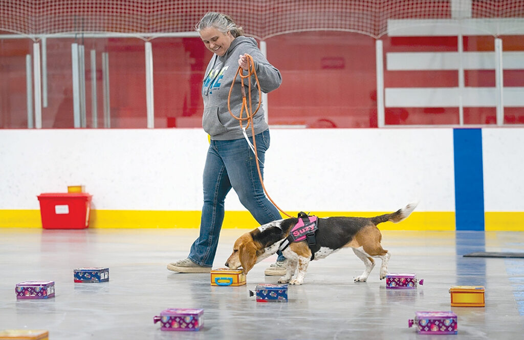 In scent work, the handler has to make sure the leash doesn’t tighten, drag, or tangle between the dog’s legs or objects in the search area. Along with leash handling skills, the handler should strive to stay out of the dog’s way, be able to collect and release the leash and lift and lower the leash based on the dog’s behaviour in the search area. The ideal picture is to have the dog work on the leash as if there is no leash attached at all.