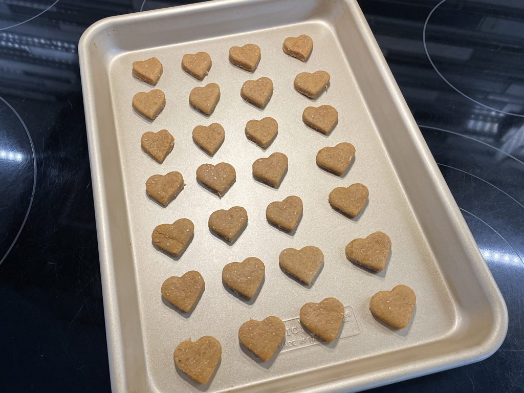 One of our favourite recipes is Peanut Butter Pumpkin Cookies. But instead of using a cookie cutter try using a silicone treat mould. These tiny bite sized treats can go along way, and are a lot easier on the pocket book.