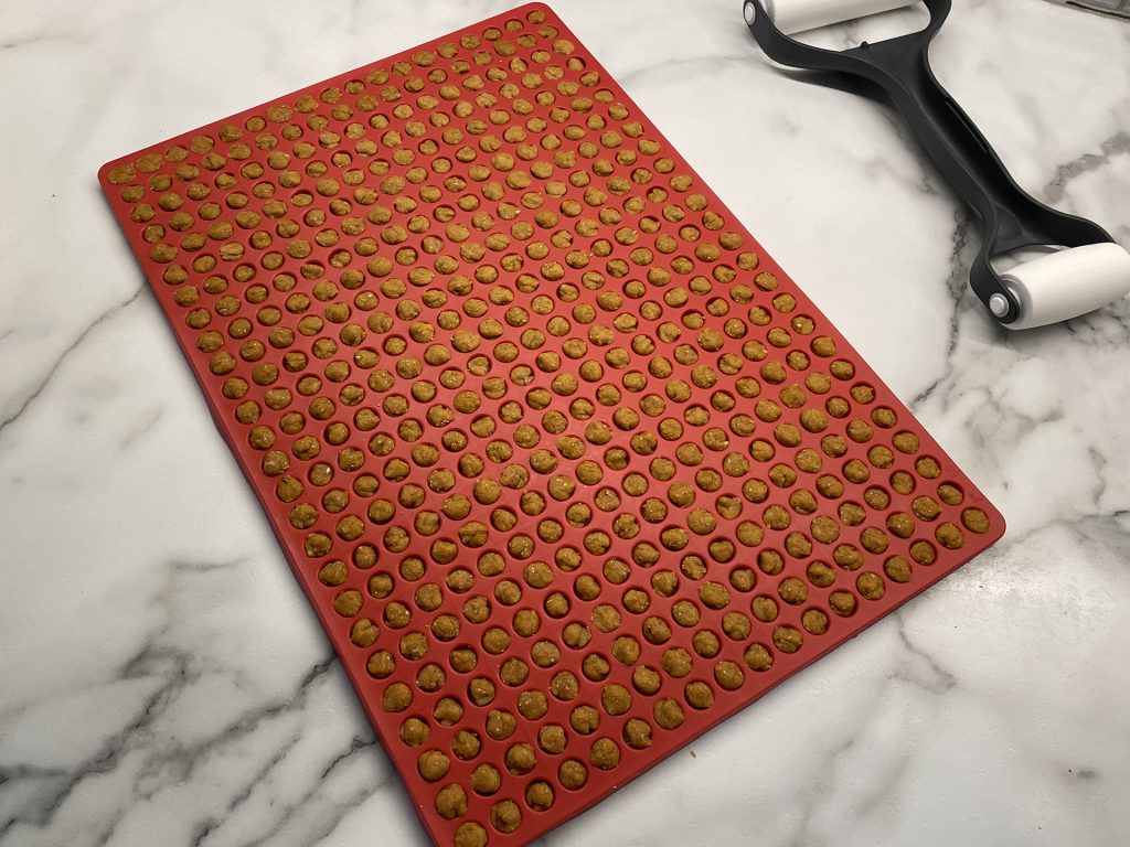 Don’t want to buy a mould? Just roll out the cookie dough 1/4″ thick on a baking sheet, and use a rolling pizza cutter to cut into small squares.
